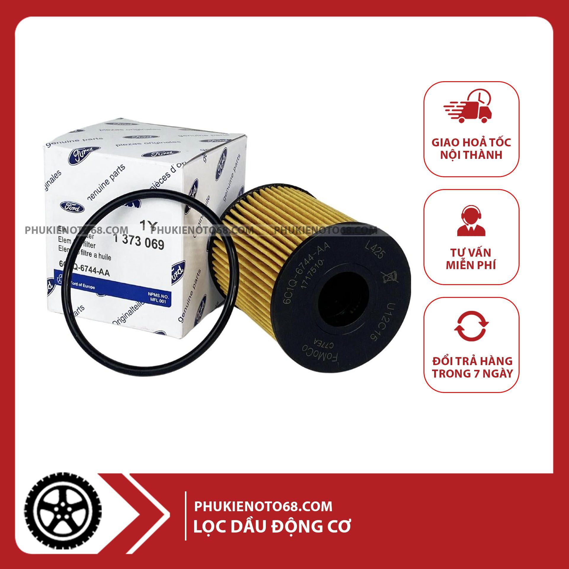 Lọc nhớt động cơ, lọc dầu xe Ford Transit (2008-2017) loại thẳng, mã: 6C1Q6744AA(6C1Q-6744-AA)/ 6C1Q6744BA /1373069